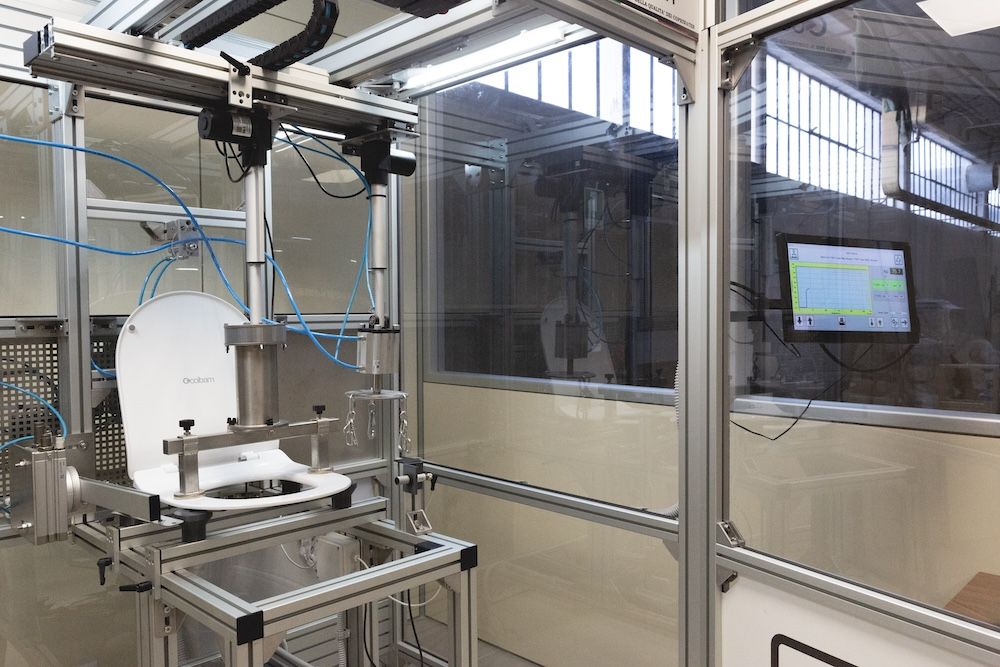 Il nostro sistema di test riproduce fedelmente quanto richiesto dalla normativa, valutando la resistenza dei materiali a sollecitazioni statiche e dinamiche, l’integrità delle superfici, la tenuta delle cerniere e l’efficacia dei gommini di appoggio. Ogni sedile viene montato su una superficie di riferimento e sottoposto a carichi crescenti fino a 175 kg, test di caduta ripetuta per 15.000 cicli, aperture e chiusure automatizzate e prove di torsione laterale, per assicurare l’assenza di rotture, deformazioni permanenti o disallineamenti.